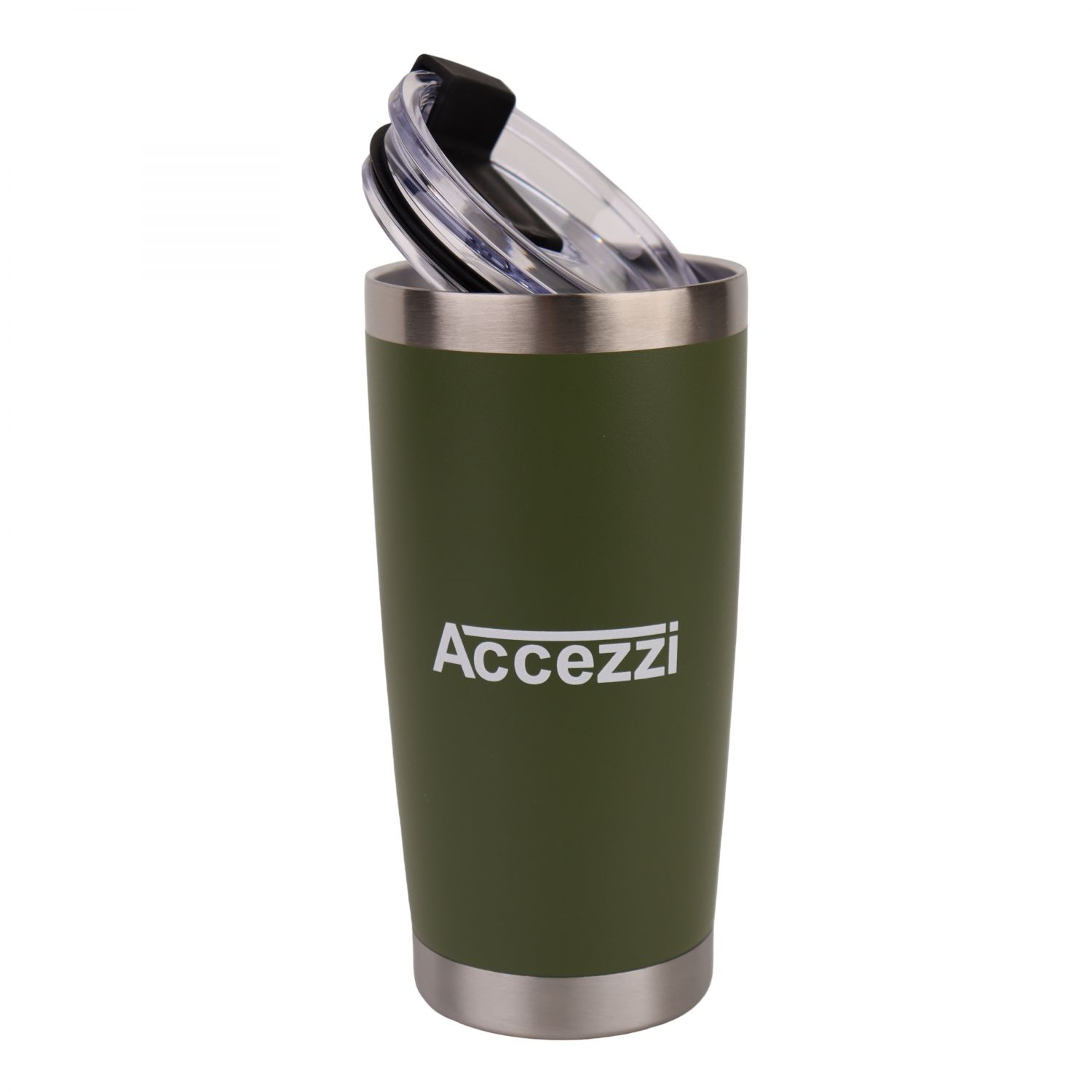 This thermal cup with lid from Accezzi is a practical tumbler made of durable stainless steel. With vacuum insulation, it keeps your coffee or tea hot for hours and your cold drinks chilled all day. The spacious travel mug, with a capacity of 591 ml (20 oz), accommodates your favorite beverage whether you're at work, in the car, on a camping trip, or hitting the slopes.