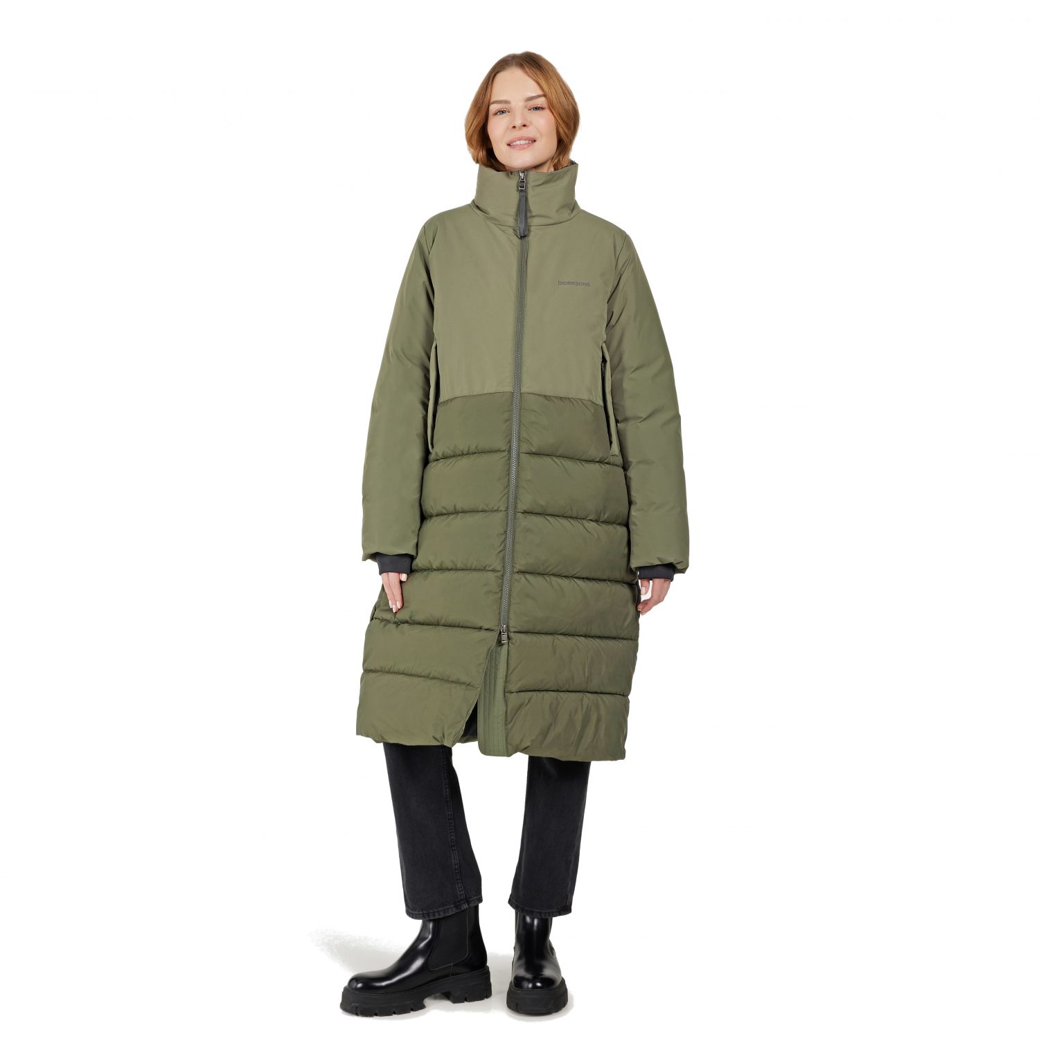 The Fabiola Parka is a long and warm winter jacket for women that combines functionality and comfort with a stylish design. The jacket is made of 100% polyester and has a PFC-free water-repellent surface. It is lined with 100% recycled fibers for warmth on cold days.