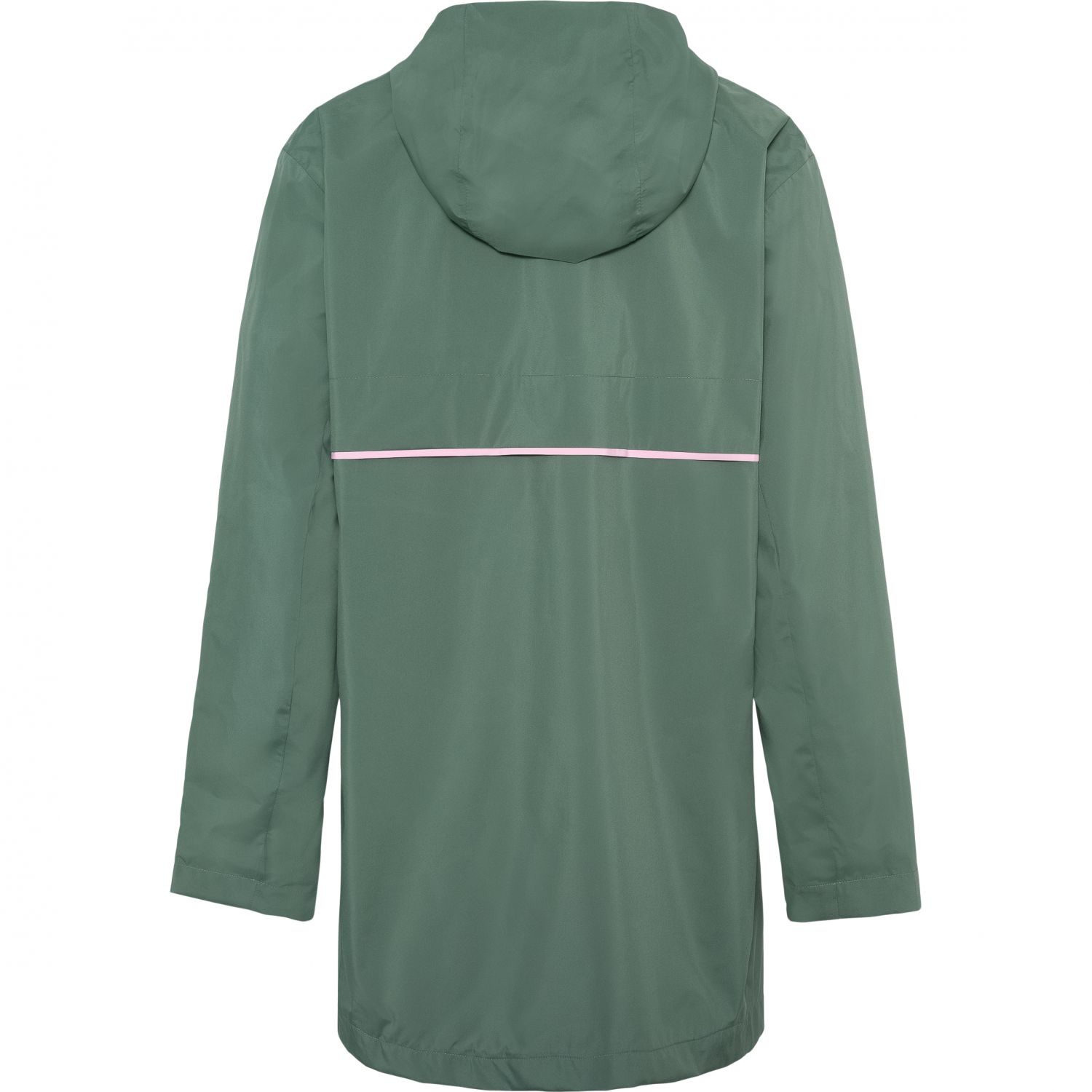 The jacket has a practical hood with a high collar for extra protection and a neck strap for easy hanging. The jacket has side pockets for storing small items and the curved hem gives a stylish look.